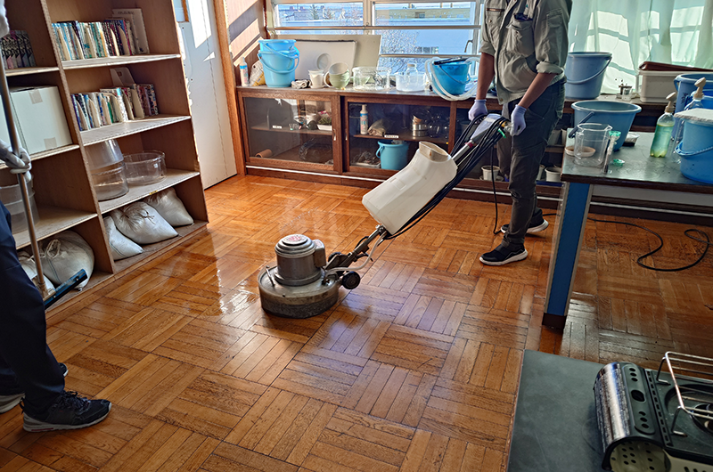 日常清掃を補完する重要な清掃であり、休日・休館日などに行います。